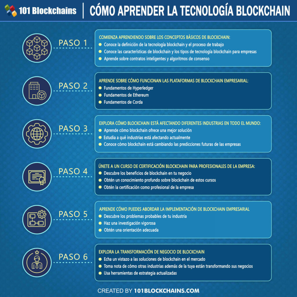 Puede adquirir conocimientos sobre blockchain de diversas formas, como leer libros, artículos en línea o documentos técnicos, escuchar podcasts, establecer contactos con entusiastas y grupos de expertos en blockchain, asistir a programas de estudio relacionados con blockchain y cursos o certificaciones en línea. Si bien los podcasts y los videos son formas fáciles y rápidas de comenzar a aprender los conceptos, es importante que elija las otras opciones mencionadas anteriormente, que requerirán un alto nivel de dedicación y compromiso si realmente desea adquirir conocimientos sobre blockchain.