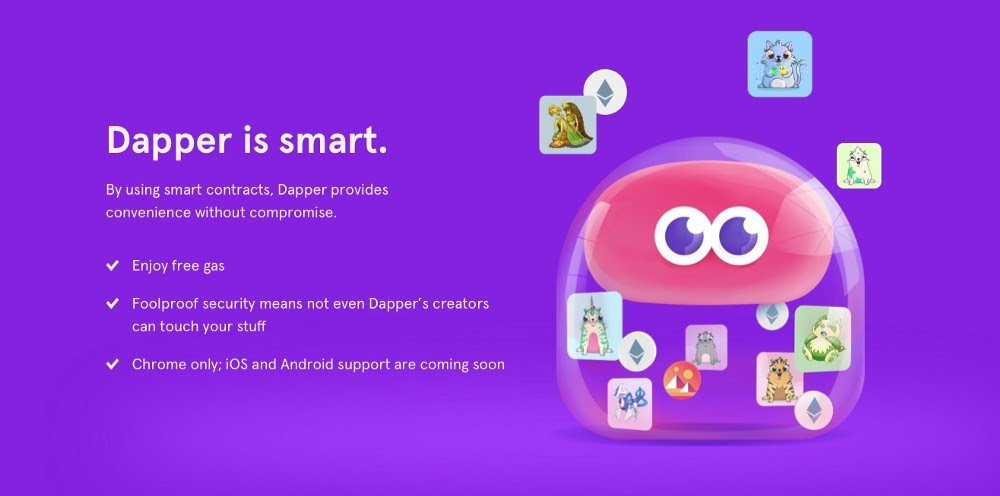 Dapper se puede definir como una "billetera inteligente" que admite tokens ERC-721 y una variedad de tokens ERC-20 , incluidos EMONT (Etheremon), BNB (Binance), VEN (VeChain) y OMG (OmiseGo), por nombrar algunos. Dapper Labs utiliza el poder del juego para brindar experiencias basadas en blockchain diseñadas para el mundo real. Dapper Labs ganó popularidad debido a los CryptoKitties que presentó. A CryptoKitties se le atribuye ser uno de los primeros juegos blockchain del mundo. ¡Te permite coleccionar, criar e intercambiar gatos virtuales incluso por dinero real!