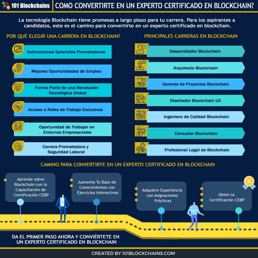 Desde la industria financiera hasta las empresas tecnológicas, las instituciones gubernamentales y la industria alimentaria, todo el mundo busca desarrolladores de blockchain cualificados. Dado que la tecnología blockchain todavía se encuentra en una etapa incipiente, existe una mayor demanda de desarrolladores que puedan prestar un servicio mejor y más útil a los clientes de una organización. Los desarrolladores de blockchain deben poseer excelentes habilidades técnicas como MYSQL, .NET, Javascript, C++, Regresión, SOAP, AJAX, etc.